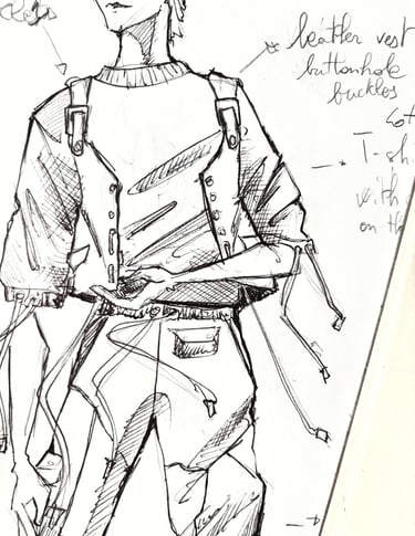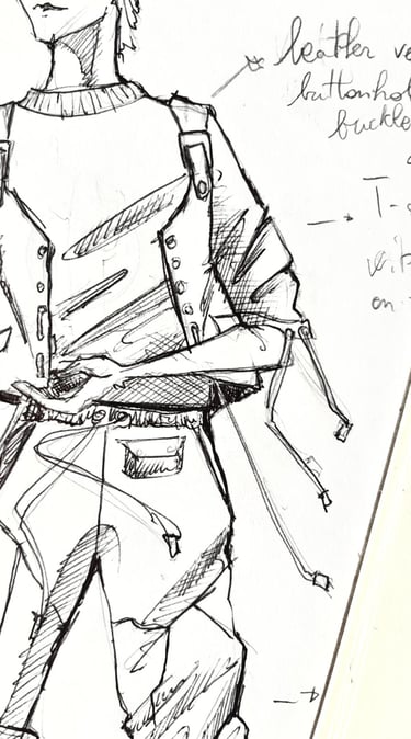 I design with intuition first, drawing, layering, experimenting, then refine through research, material study, and proportion.