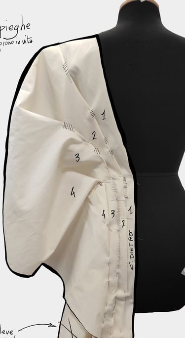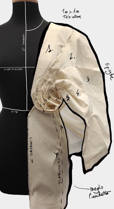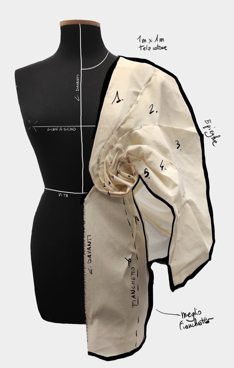 the moulage technique helps in this case to explore the majesty and precision of the final phase: a spiral of raw fabric that seeks grandeur and perfection