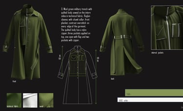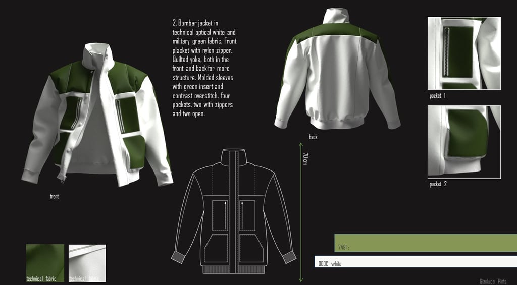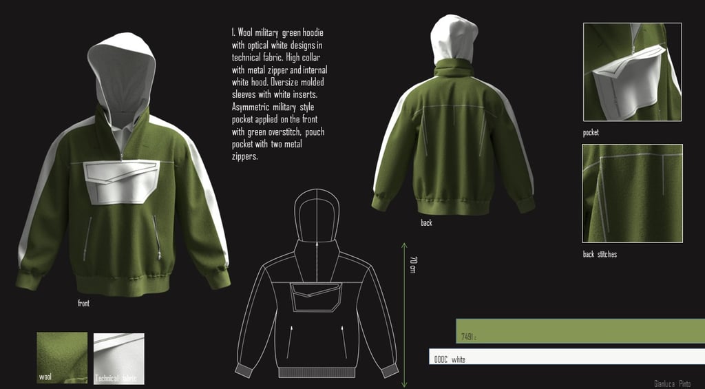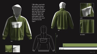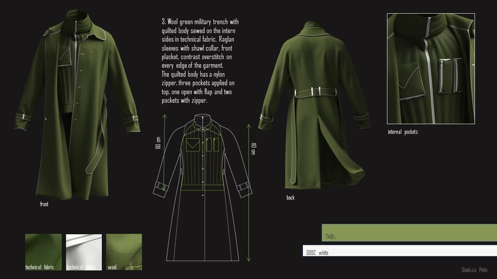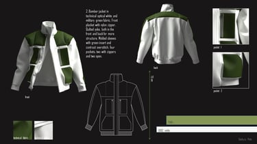 Experimenting with textures, volumes, and materials, this project of outerwear was created for urban living. The contrasts in materials and colors take center stage: wool meets synthetic fabrics, just as nature meets concrete. The use of Clo3D is essential for presenting the capsule, replacing traditional photography in this case.